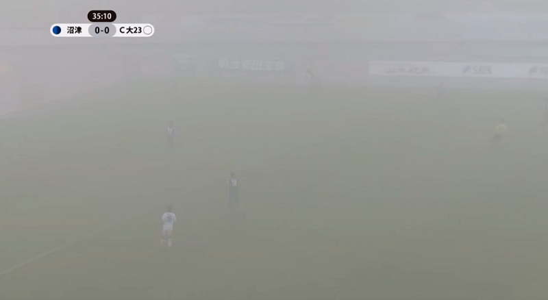 20分を越えたあたりから、濃い霧がスタジアムを襲う!