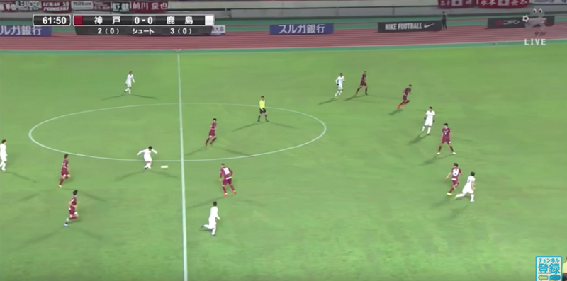 長さ的にもボールは神戸DFとGKのちょうど間で止まっており、全ての点でパーフェクトなパスであった。キム・スンギュとしてもこれは失点を覚悟したはず…。
