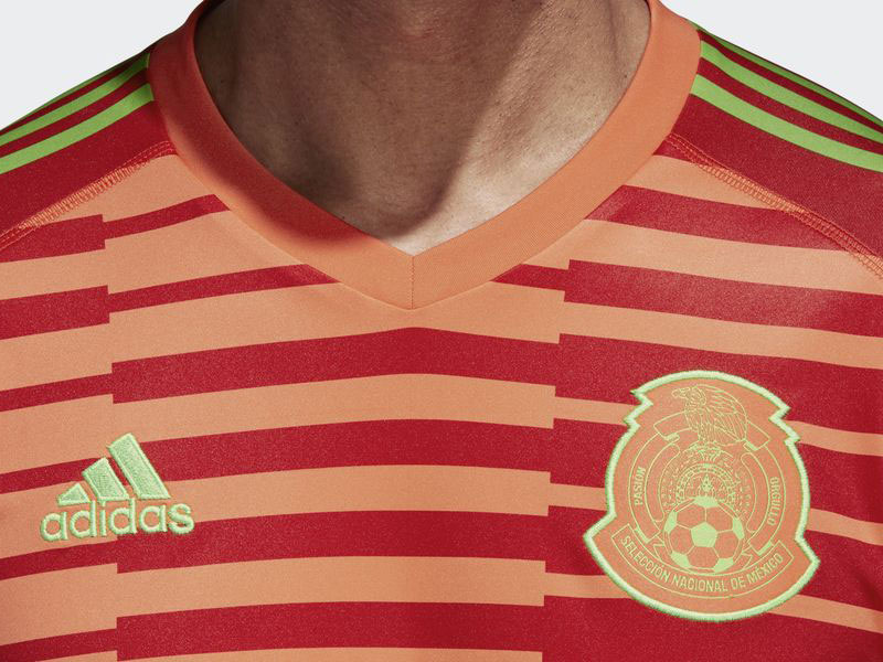 新しいゴールキーパーキットは幅が異なるボーダー柄という斬新なデザイン。基本的にはadidasのGKキット“adiPro 2018”がデザインのベースとなっている。なお背面にボーダーは入らない。