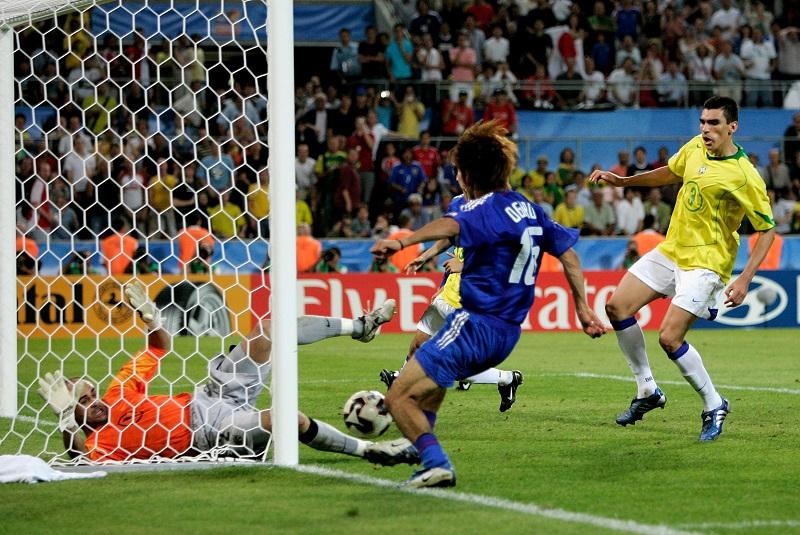 ブラジル相手に1-2とリードされた日本は87分、ペナルティエリアの少し手前中田英寿が倒されフリーキックを獲得。