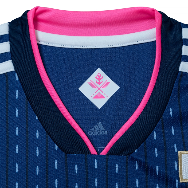勝利への魂で染め上げた『勝色』をベースカラーに、歴史を紡ぐ糸をイメージした「刺し子柄」が目を引くデザインが話題だ。
