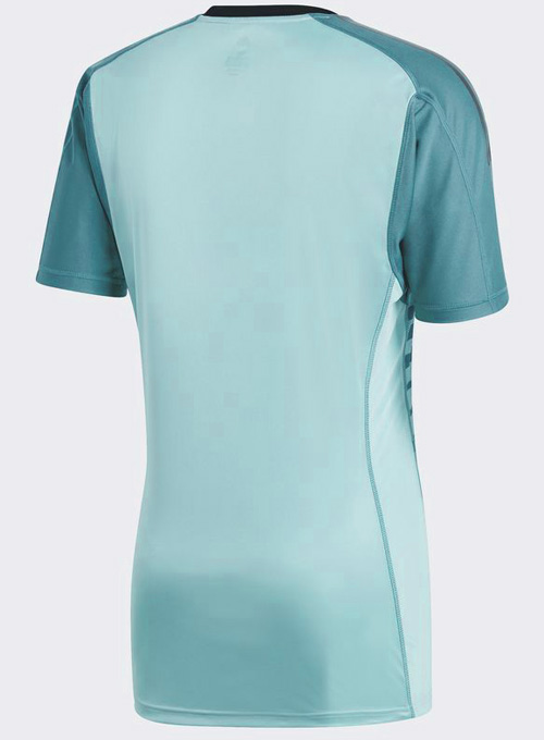 グリーンを基調とした今回のゴールキーパーユニフォーム。異なる太さのボーダー柄という独特なデザインは、GKキット“adiPro 2018”がベースになっている。