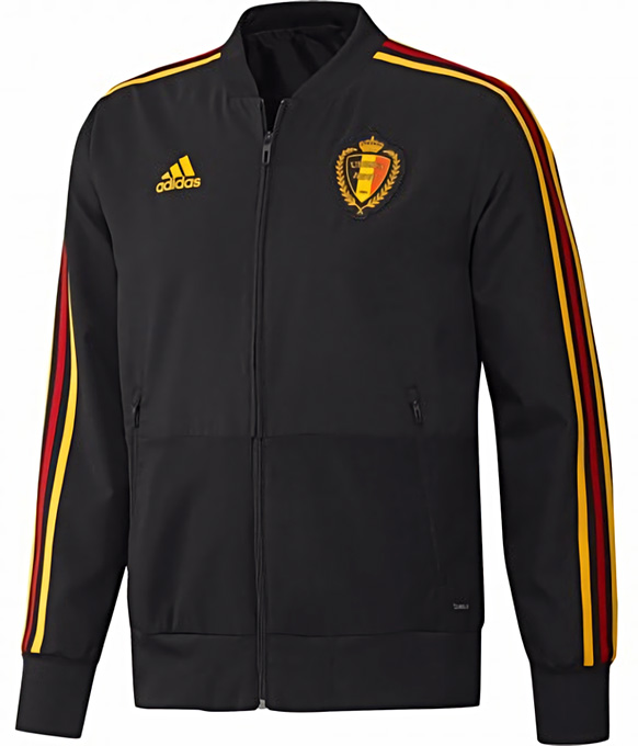 2018W杯モデルのトレーニングウェアはブラックを基調としたものが多い。選手がオフピッチで着用するプレゼンテーション・ジャケットは、レプリカでも人気の商品。選手用にはスポンサーロゴが入る。