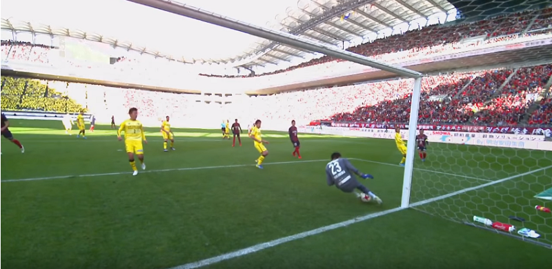 そんなこの試合で、鹿島にゴールを許さなかったのがGK中村航輔。0-0で迎えた後半、大きな見せ場を作った(02:07から)。