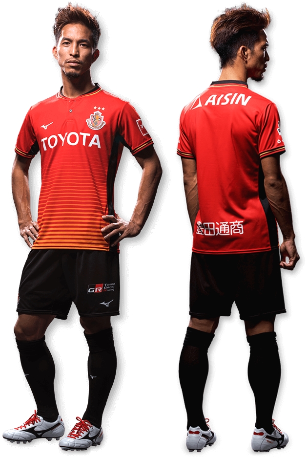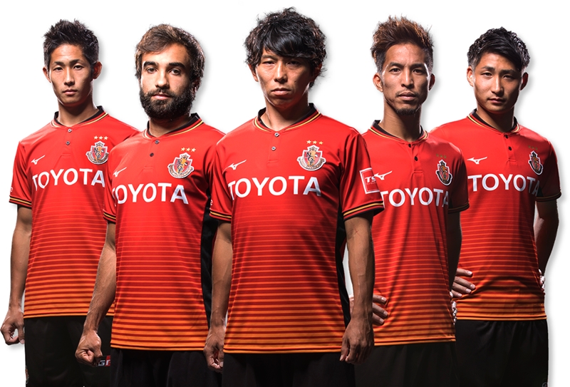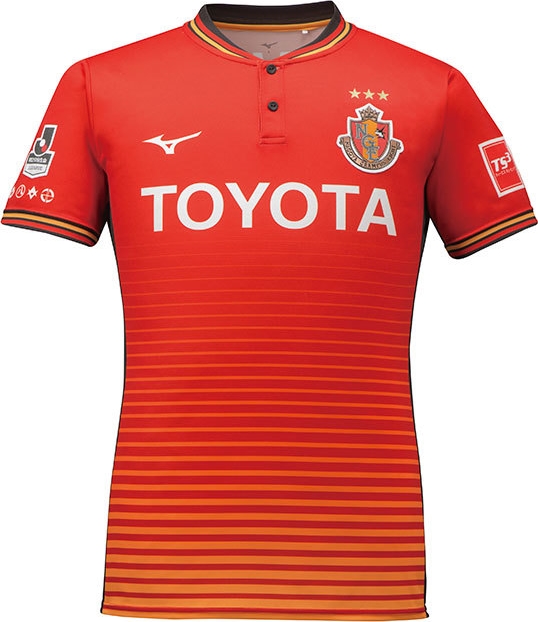 名古屋の新しいホーム(1st)ユニフォームは、赤を基調にグラデーションのボーダー柄を採用。
