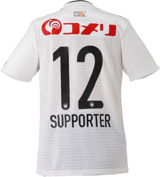 白を基調としたアウェイ(2nd)は、薄っすらとボーダー柄が入ったデザイン。adidasのテンプレート「CONDIVO18」を採用したモデルだ。