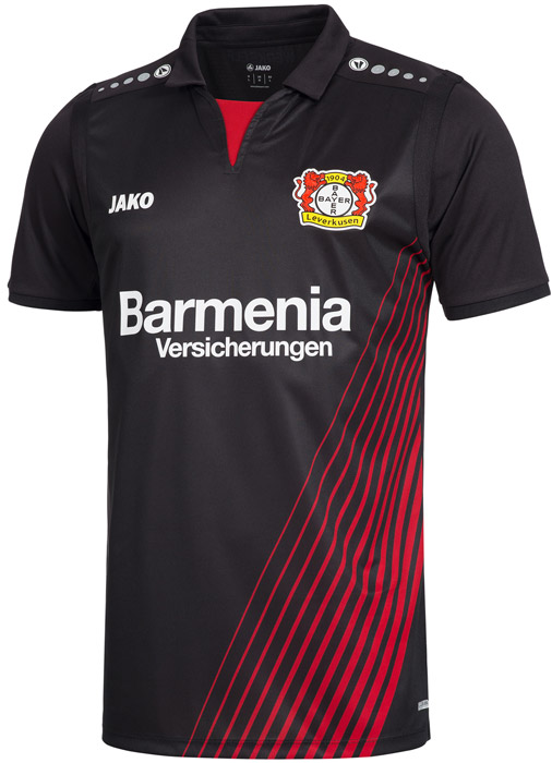 新しいホームユニフォームは、ブラックを基調にレッドのバイアス・ストライプ。レヴァークーゼンのホームユニフォームは、シーズンによって「レッド」「ブラック」「レッド/ブラックのストライプ」の3パターンのいずれかが使われている。