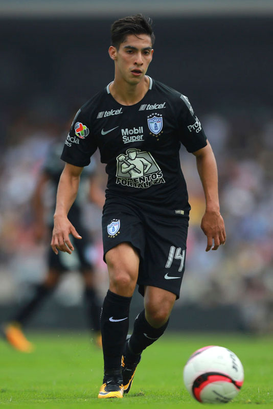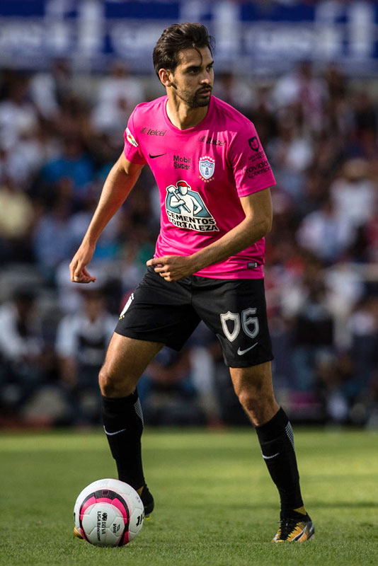 全身ブラックのアウェイユニフォーム。パチューカではたびたび使われる色だが、ナイトゲームで全身ブラックのユニフォームは迫力がある。