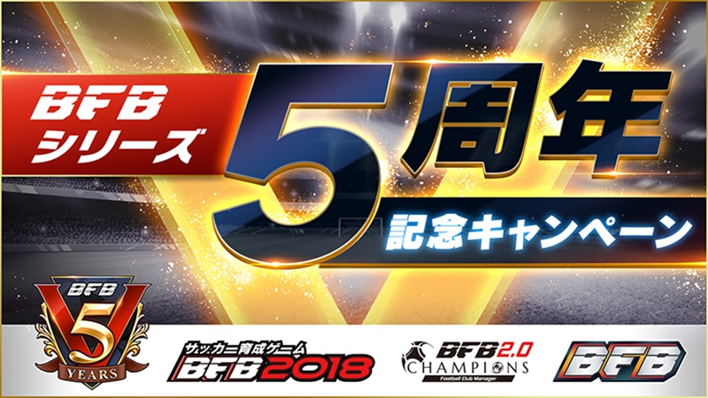 それから5周年を記念し、現作品である『BFB チャンピオンズ 2.0~Football Club Manager~』および『BFB 2018-サッカー育成ゲーム』にて、5周年記念企画と称した豪華キャンペーンが多数開催されている。