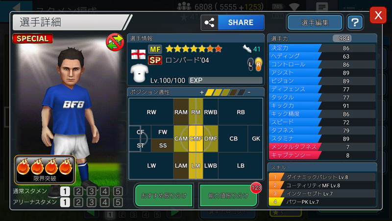 その一つが、ログインボーナスによる超強力な新スペシャリティ[赤 SP]を保持した「★7[SP] ロンバード’04」のプレゼント。さらに、この選手を最大まで限界突破させることができる数の「★7[SP]スピリット」も受け取ることができる。つまり、一気に強化可能だ。