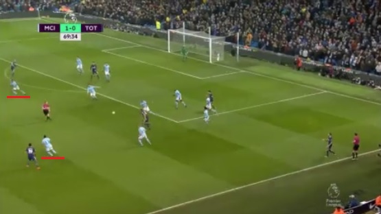 このカウンターアタックは、トッテナムの右SBキーラン・トリッピアーのスローインがハリー・ケインに通らず、ルーズボールになるところから始まるのだが、ここで際立ったのがシティの素早いアクション。前述した「切り替えの早さ」であった。