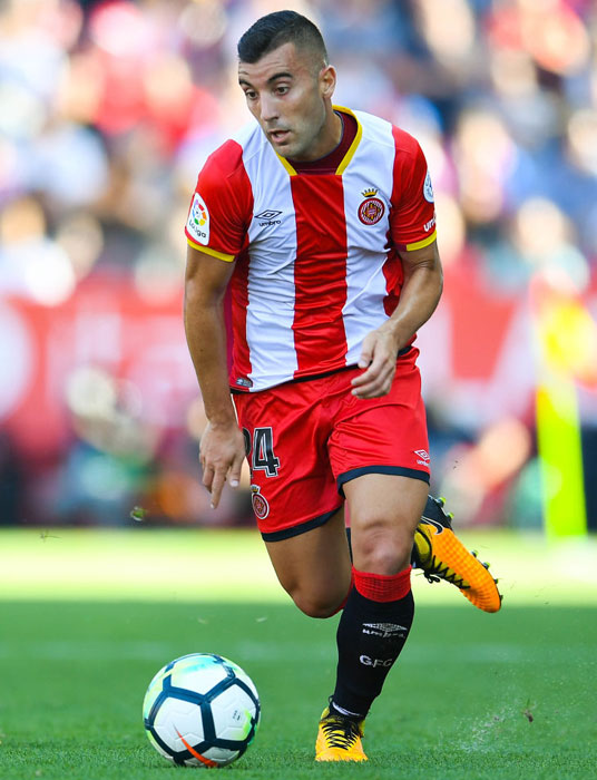 今季ここまでは胸スポンサーが付かないが、左袖にはスポンサー“Costa Brava Pirineu de Girona”(リゾート地コスタ・ブラバの観光案内サイト)をプリント。画像はレアル・マドリー戦で決勝点となるPKを決めたポルトゥ。
