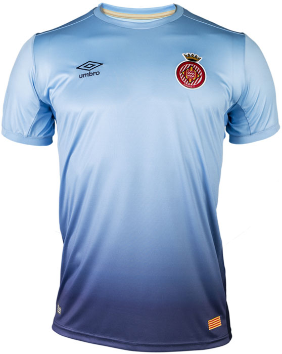 アウェイユニフォームは、地中海に面した土地柄のジローナらしくブルーを基調。海深く沈むような、上から下にかけて濃さが増すグラデーションが美しいデザインだ。