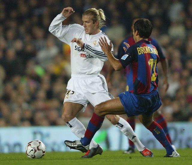 2005年4月のクラシコで2得点を導いたベッカム。4-2の勝利に貢献した。