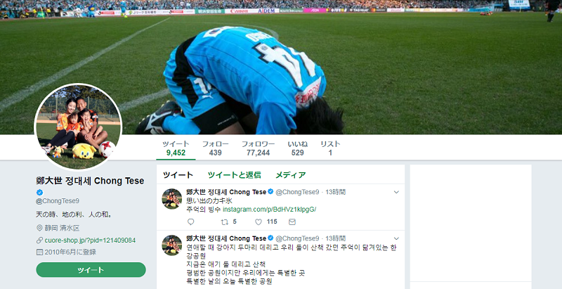 そんなチョン・テセはTwitterアカウントを持っているが、そのヘッダーを見てみると…