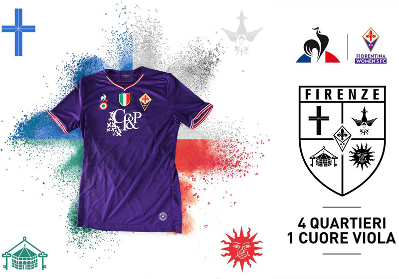 これはフィオレンティーナの女子チーム「Fiorentina Women's FC」のホームキット。このビジュアルイメージはキットサプライヤーのle coq sportifが発表したものだが、もっと大きな画像で見てみよう。