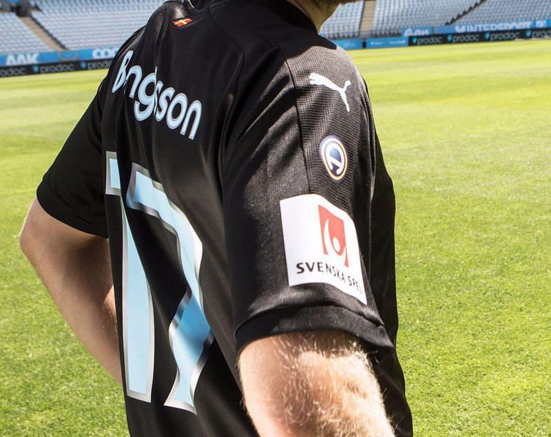 右袖にはリーグスポンサー“SVENSKA SPEL”(国営のオンライン賭博)をプリント。その上の丸いマークがアルスヴェンスカンのロゴマーク。