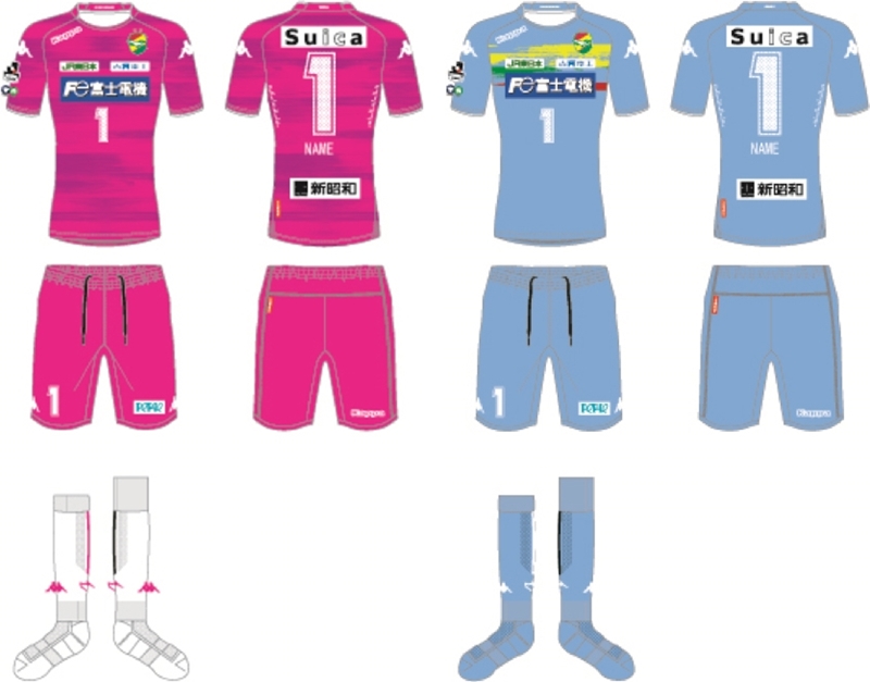 GKユニフォームは、ホームがピンク、アウェイがサックスブルー。それぞれのユニフォームにもスピード感を表現した柄を配置している。