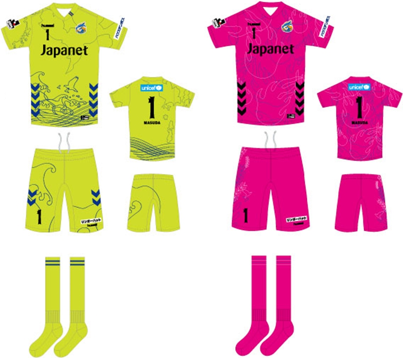 GKユニフォームは、緑のホーム、ピンクのアウェイという組み合わせ。