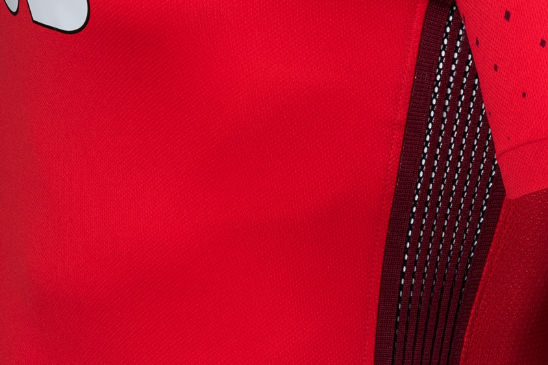 メ ッシュの開閉作用による優れた通気性と伸縮性により、選手にかかるストレスを軽減している。