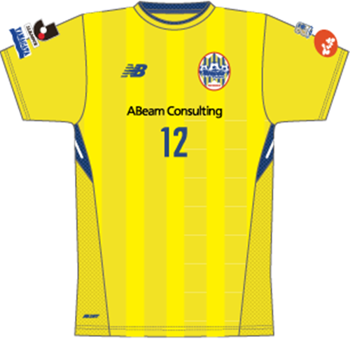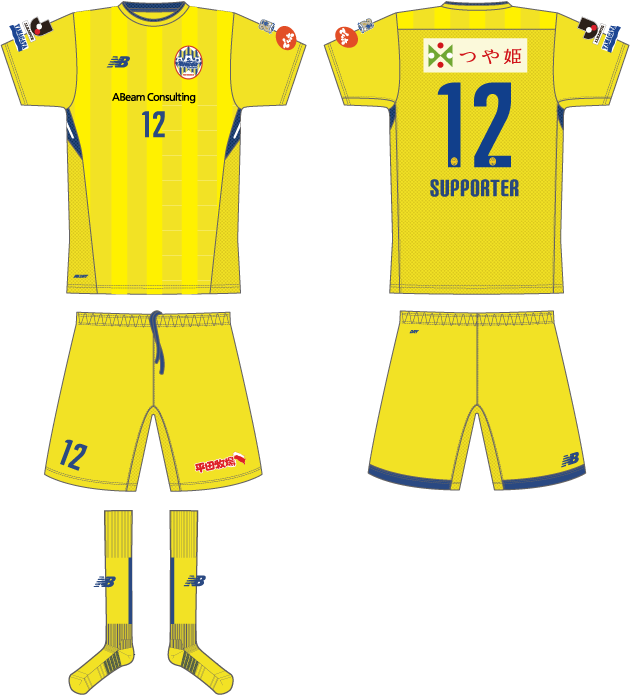 アウェイ(2nd)は、ホーム同様の縦縞を基調に、衝撃的なインパクトを残した2009年のJ1初戦(※アウェイ磐田戦で6-2勝利)に着用していた山形イエローのカラーリングを忠実に再現。