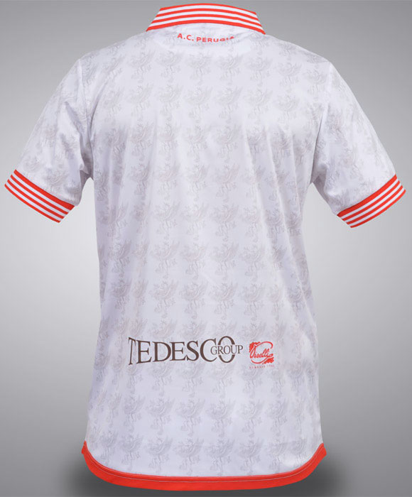 背面首元の文字はチーム名“A.C.PERUGIA”。腰部分にはスポンサー“TEDESCO”(お菓子のブランド)をプリントしている。