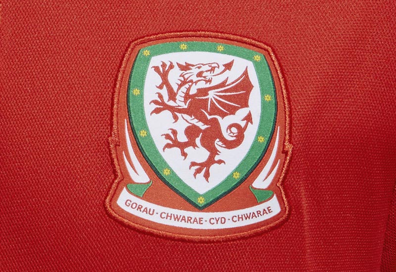 ウェールズ代表といえば「赤い竜(ウェルシュ・ドラゴン)」のエンブレムが特徴。この竜は国のシンボルであり、国旗にも描かれている。その下にはウェールズ語でスローガン“GORAU CHWARAE CYD CHWARAE”(最高のプレーとはチームプレー)をプリントしている。