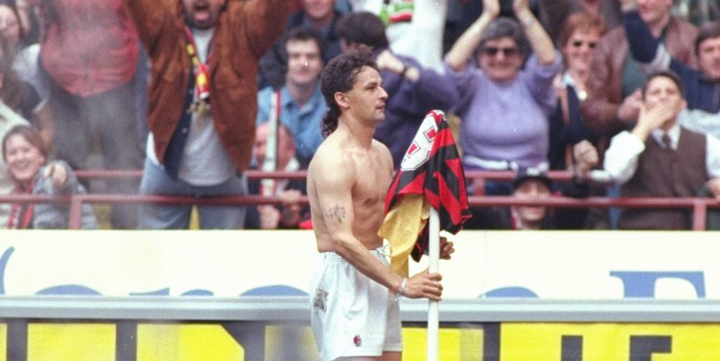 ミランに移籍した29歳のバッジョは、もう若い頃ほどの輝きはなかったが、スクデットを助けるゴールを決めた。