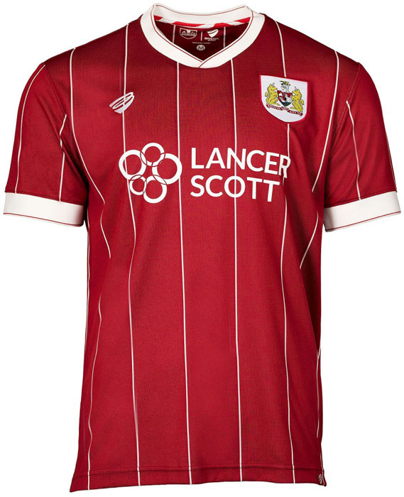 ホームキットのレッドはクラブ創設時から使われている伝統のカラー。今季はピンストライプがクラシックなデザインだ。胸のスポンサー“LANCER Scott”は建設会社。