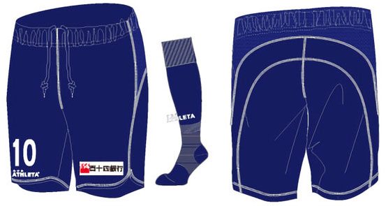 パンツとソックスはネイビーを基調。パンツの左には「百十四銀行」のスポンサーロゴをプリントしている。