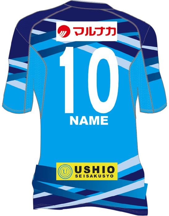 背面はスポンサー「マルナカ」を頂点に、背番号とネームをプリント。そして初めて腰部分にスポンサー「USHIO」が付いた。