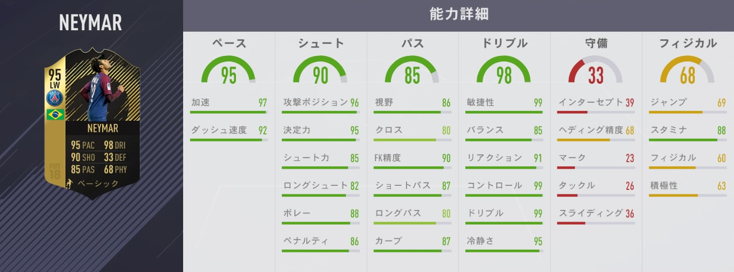 『FIFA18』の「TOTW19」に選ばれた、PSGのブラジル代表FWネイマールの能力を見てみよう。