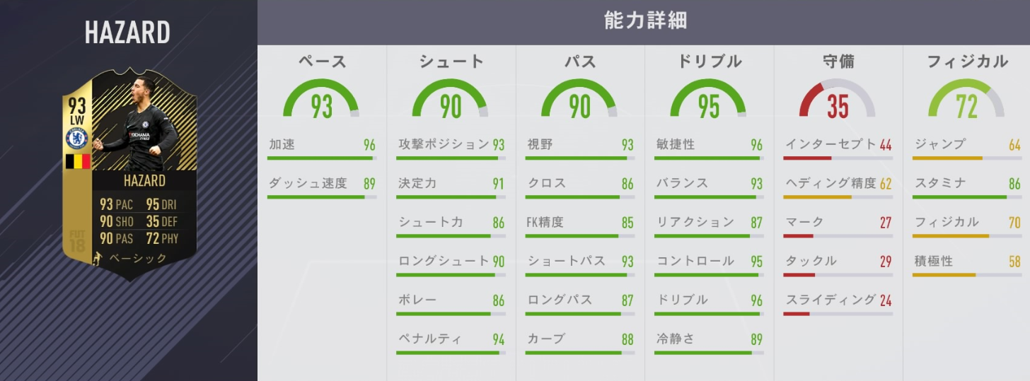 同じく、チェルシーのベルギー代表MFエデン・アザールはこんな感じ。