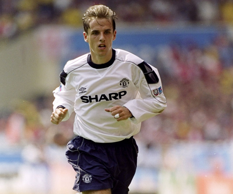 フィリップ・ネヴィルが着ているのはホワイトを基調とし、袖のデザインが特徴あるサードキット。ただ、あまり試合では使われなかったため印象は薄い。