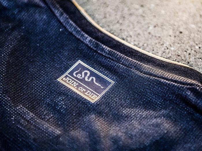 背面首元にはインパクトがある“JOIN, or DIE”(集結せよ、さもなくば死だ)をプリント。