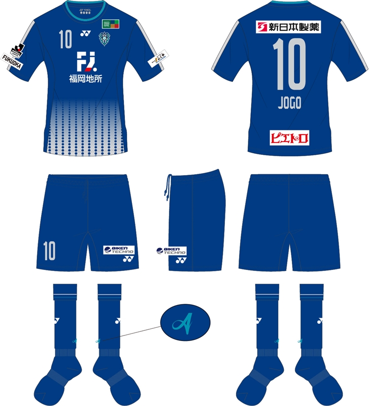 ホーム(1st)は、クラブカラーであるネイビーブルーを基調に、チームを象徴する蜂(スペイン語でアビスパ)のように結束して戦う様をハニカム柄に見立て、アビスパ福岡の伝統であるストライプの部分に配置。