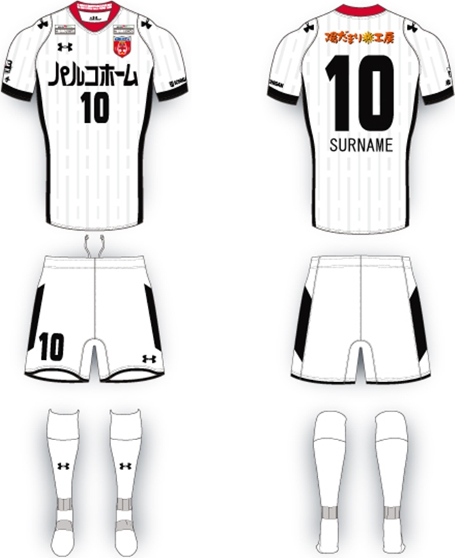 クラブカラーの白を全身にまとい、差し色に赤と黒を使用。ホームユニフォームのメインカラーが「白」のクラブは、現在のJリーグにおいて盛岡だけである。