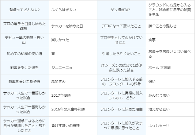 そんな川崎と言えば、公式サイトにある選手紹介ページの充実に力を入れており、例年膨大な数の「Q&A」を用意している。