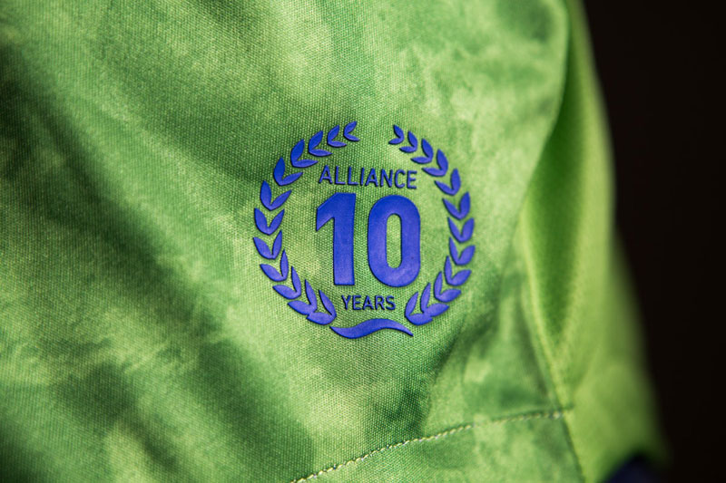 左裾にはシーズンチケット保有者などで構成される団体、“Alliance Council”(直訳すると同盟評議会)の発足10周年を祝うプリントが付く。