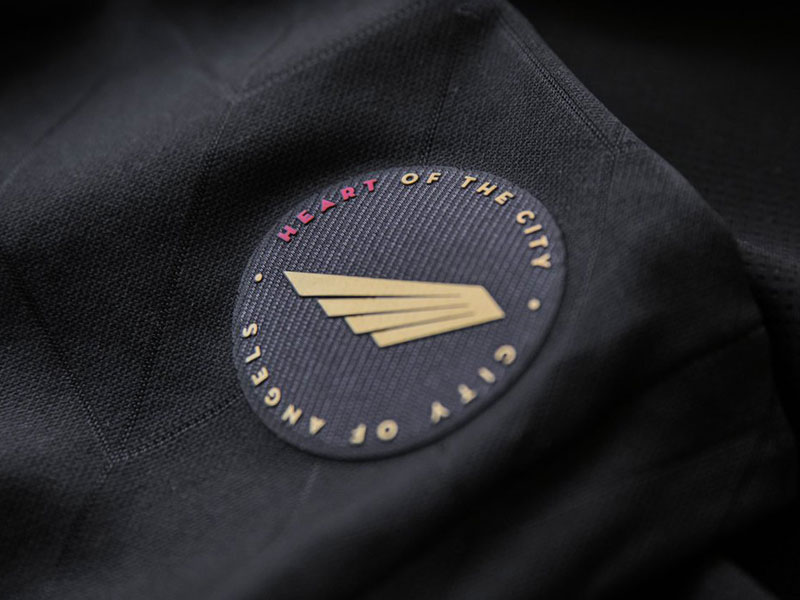 左裾にはホームタウンのロサンゼルスへの想いが込められたジョックタグをプリント。中央の翼はチームのシンボルマークで、「力、強さ、速さ」を表す。