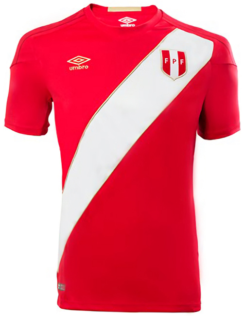 ホームキットと同じくクラシックで伝統的なデザインのユニフォーム。レッドはペルー国旗色で「勇気と愛国心」を表す。襷(たすき)にゴールドのパイピングを施している。