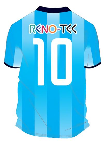 背面にもストライプをあしらっている。背中スポンサーは「RENO-TEC」で継続。