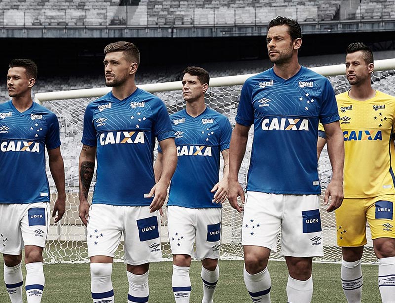 Umbroがリリースしたビジュアルイメージ。選手着用のキットは胸に“CAIXA”(ブラジルの銀行)、鎖骨に“Cemil”(乳製品ブランド)のスポンサーロゴをプリントしている。