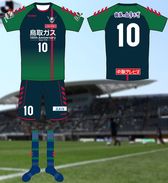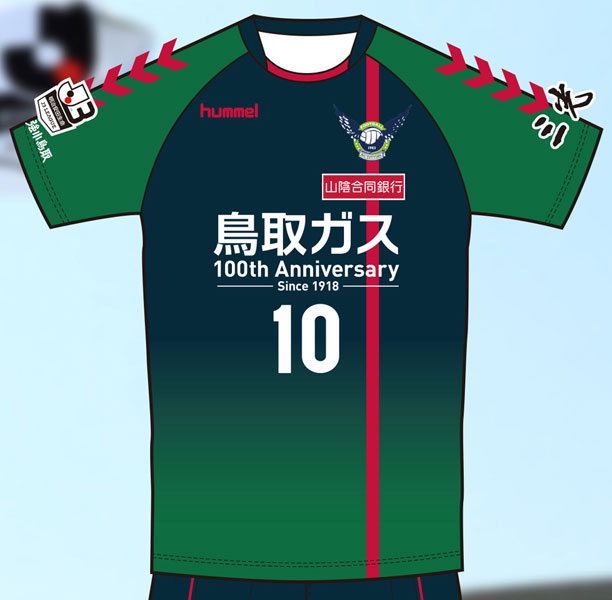 胸スポンサーは「鳥取ガス」で継続だが、ロゴは日本語表記に変更。エンブレムの下には新規スポンサー「山陰合同銀行」がロゴを掲出している。