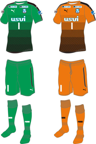 GKユニフォームは昨季から完全にカラーチェンジし、1stがグリーンで2ndがオレンジ。デザインは昨季から継続で、斜めストライプのグラデーションが印象的だ。