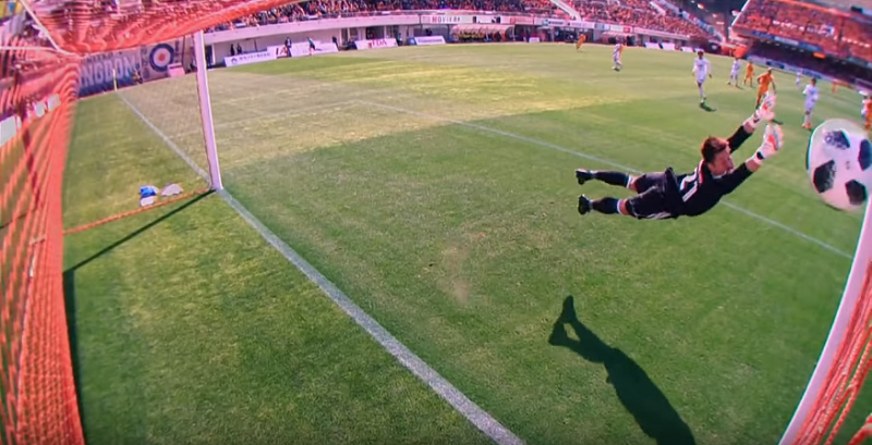 ボールは全く回転することなく枠内へと飛び、ゴール裏からのカメラではボールに描かれたデザインが確認できるほどであった。ここまでの無回転は珍しい!