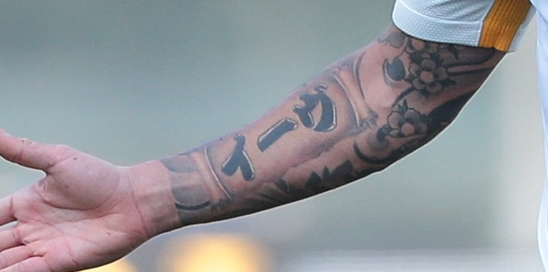 ナインゴランがクリスマスイブ生まれかと言うと決してそういうわけでもなく、この「イーヴ」が何を意味するのかは分からず。かなり目立つ部分の日本語タトゥーということで、気になるところだが…。