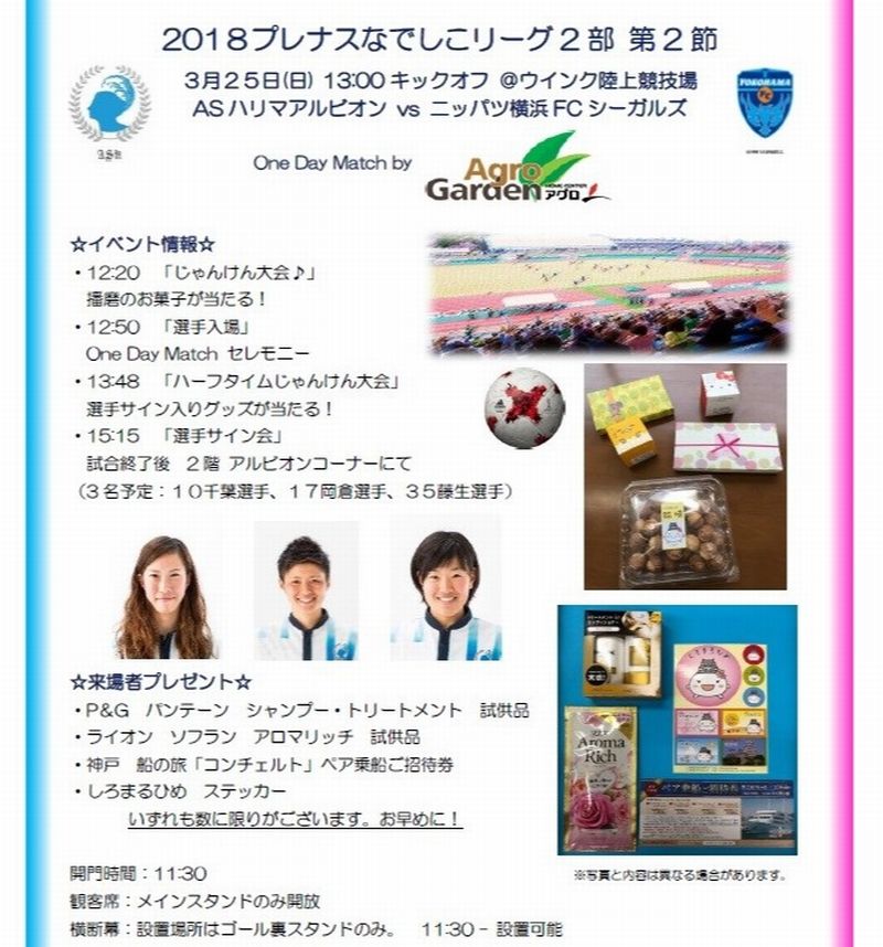 第2節:3/25 (日)13:00K.O. ハリマVSニッパツ@ウインク
