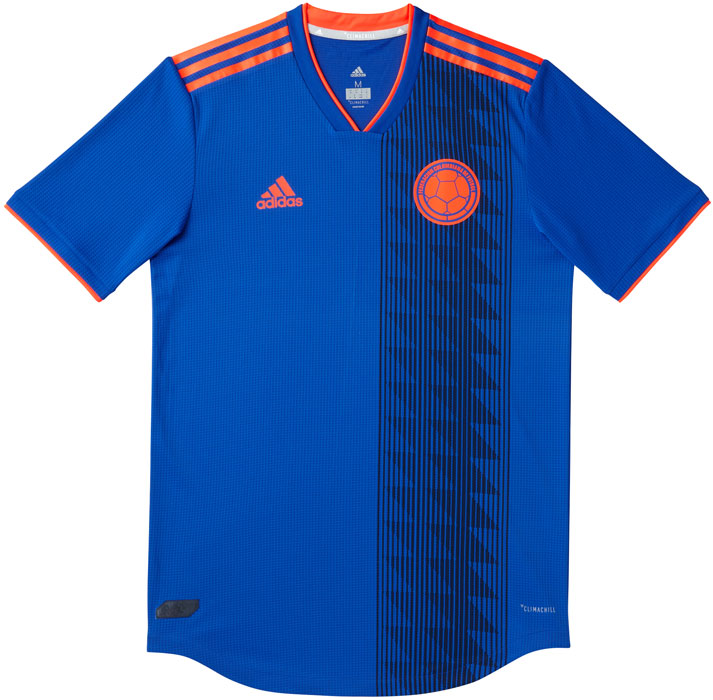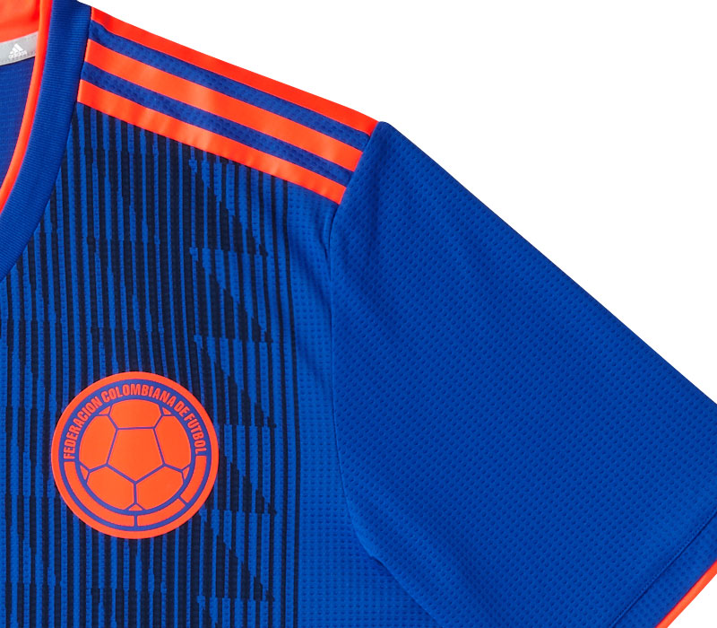 ここまでブルーを前面に押し出したアウェイユニフォームは久しぶり。左側には垂直にコロンビアの伝統的な模様のグラフィックが入る。