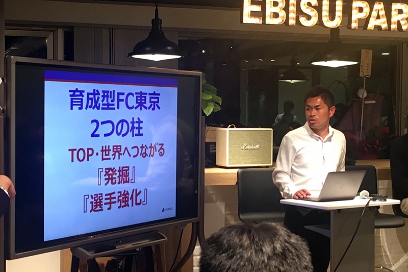 FC東京では、2011年の時に「2015年にJ1のスタメン5名をユース出身者にする」という目標を掲げた。この目標は一部の試合ですでに実現できており、今後は2020年を目標にJ1のリーグタイトルを取りたいという。スカウティングの現場ではすでにU-12、つまり小学生年代の有望選手たちをいかに獲得するかが重要になっているという。FC東京の下部組織出身者では、武藤嘉紀、丸山祐市らが小学生年代から、権田修一らがU-15チームからと日本代表経験者が早くからチームに在籍していた。